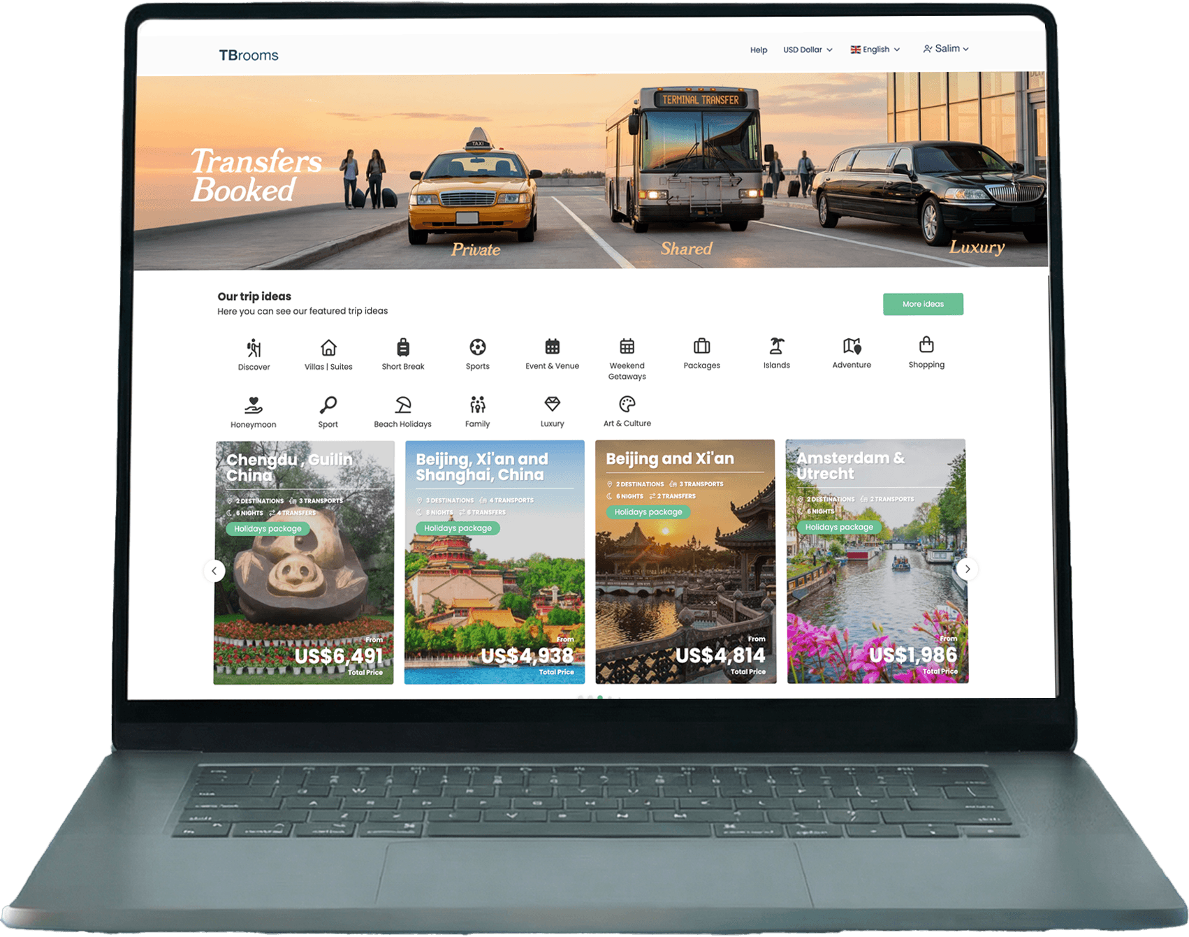 Instead of juggling suppliers, systems, and emails, TBrooms gives you one intelligent platform to manage hotels, flights, transfers, and travel services worldwide.